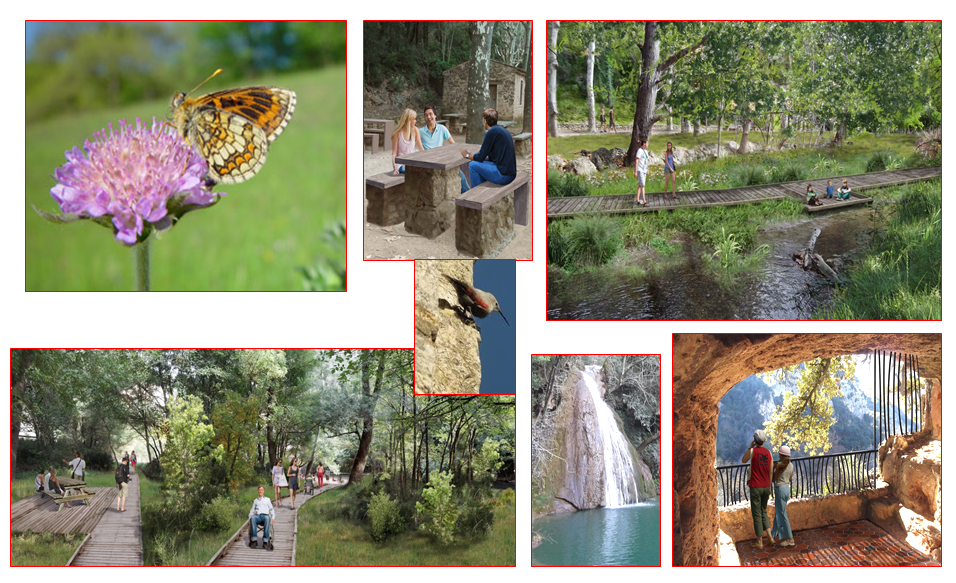 Réutilisation détournée du mobilier existant pour les zones de pique-nique et d’accueil/ Valorisation des grottes dans une approche contemporaine et écologique (préservation des Chauve-souris)/ Création de prairies riches en espèces